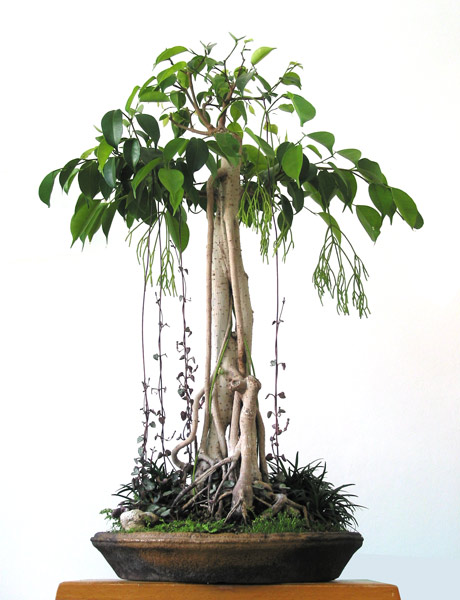 Benjamin İnciri bonsaisinde budama ve şekillendirme, ağacın hem kompakt kalması hem de estetik bir form kazanması için düzenli olarak yapılması gereken bir bakımdır. Bu tür hızlı büyüdüğü için özellikle ilkbahar ve yaz aylarında yeni sürgünler çabuk uzar; sürgünleri birkaç yaprak çifti uzadığında kısaltmak hem daha sık bir yapraklanma sağlar hem de ağacın genel şeklini dengede tutar. Kalın dal kesimlerini yapmak için en uygun dönem genellikle ilkbaharın başıdır, bu sayede bitki kesimlere daha hızlı tepki verir. Şekillendirme için telleme uygulanacaksa dalların esnek olduğu dönemler tercih edilmeli ve tellerin dallara iz bırakmaması için düzenli olarak kontrol edilmelidir. Benjamin doğal olarak zarif ve akıcı bir form sergilediği için amaç, bu doğal görünümü bozmadan onu daha dengeli ve güçlü bir bonsai siluetine yönlendirmektir.